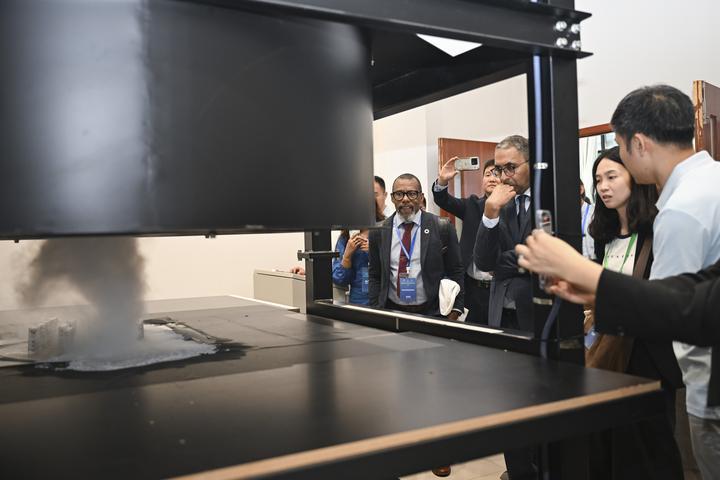 2025年6月23日,联合国开发计划署驻华代表处和同济大学正式宣布启动“联合国开发计划署-同济大学城市防灾韧性创新实验室(RISE Lab)”。该实验室聚焦推进全生命周期智能防灾减灾,以及超大型城市韧性基础设施建设,为城市防灾减灾提供智慧支持。这是与会嘉宾在参观同济大学土木工程防灾减灾全国重点实验室。