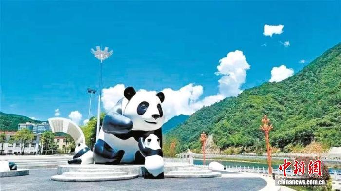 2025年7月,佛坪县城内的熊猫雕塑。 曹钰宠 摄