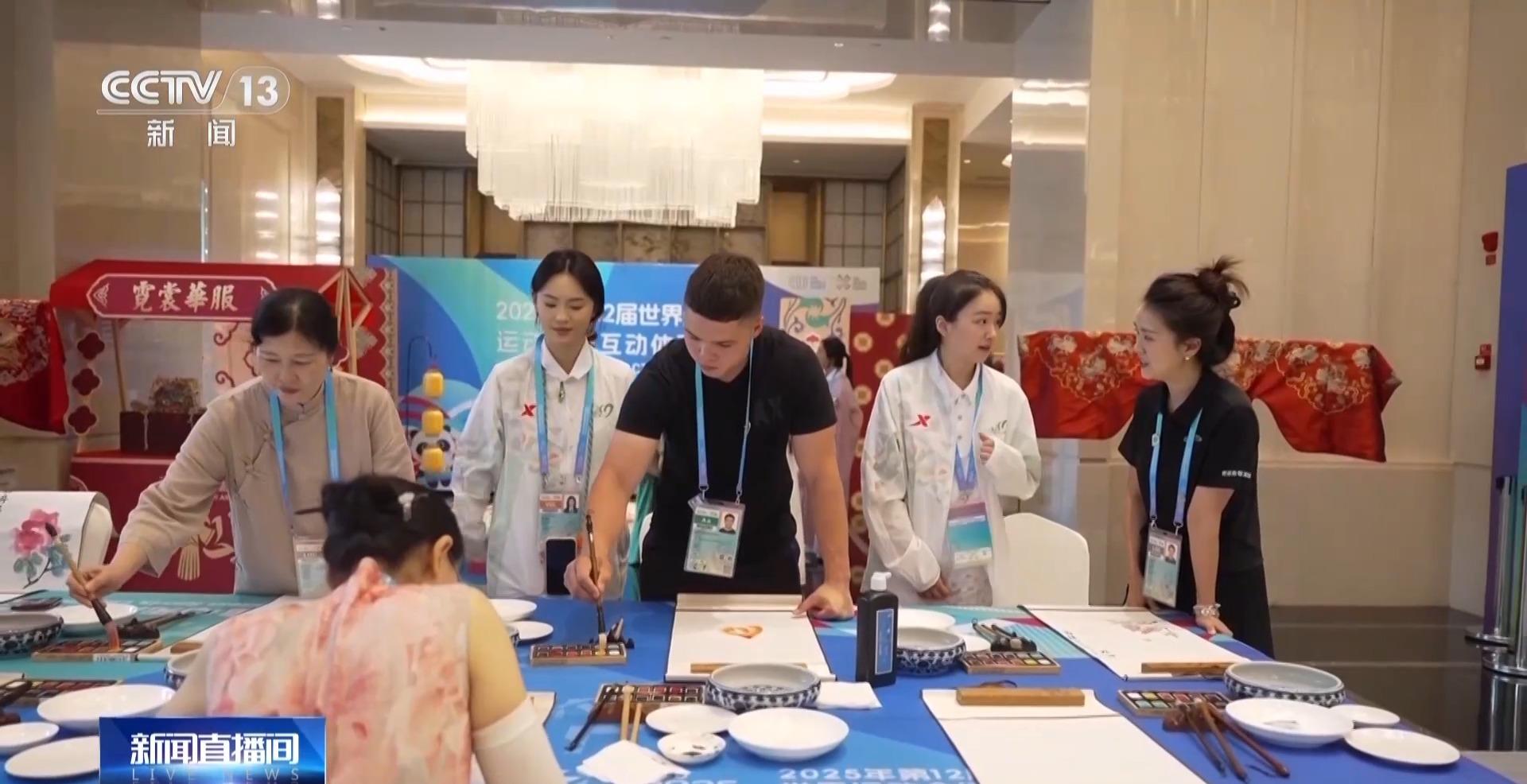 第12届世界运动会正在四川成都举行,这几天,运动员们居住的运动员村文化活动也拉开序幕,运动员们在比赛之余,还能体验竹编、剪纸等非遗活动,体育的盛会也成了文化交融的舞台。