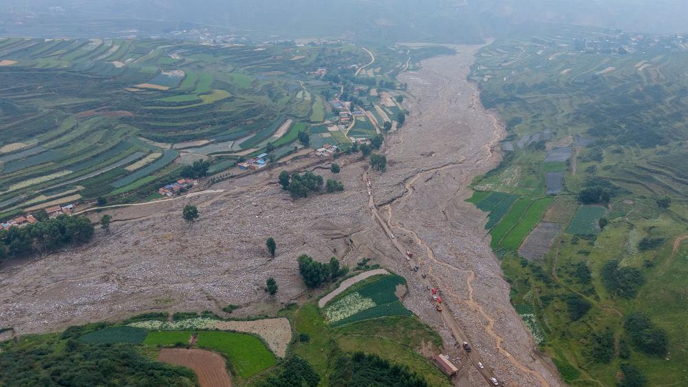 山洪致道路、供电、通信等基础设施受损严重。记者辗转进入受灾较重的马坡乡马莲滩村看到,原来遍野青绿的马莲滩,如今满是堆积的淤泥、数米长的巨石、被连根拔起的树木。