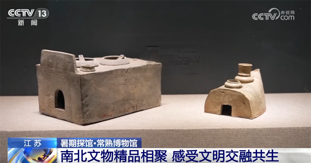 再来看这两件展品,它们都是灰陶灶,是明器的一种,而且都是一孔灶,但是出土于北方和南方的灰陶灶明显在风格上是不一样的,北方的更为方正,而南方的这个船型灶也是属于江南地区特有的灰陶灶。