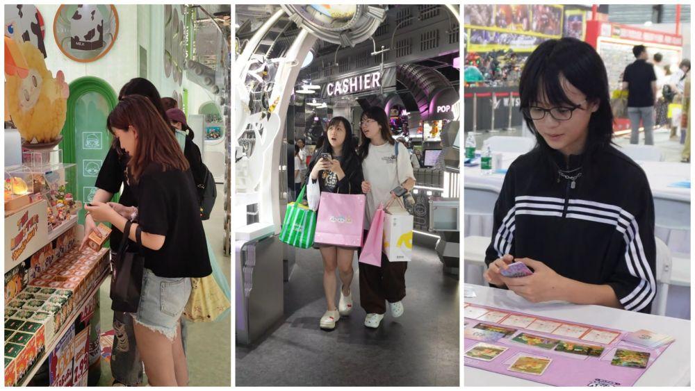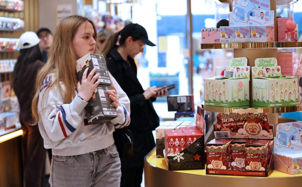 位于上海市南京路步行街的一家潮玩店总是人流涌动,年轻人排队抢购自己心仪的潮玩IP盲盒。相关财报显示,2024年该公司实现营收130.4亿元,同比增长106.9%。年轻人纷纷加入中国原创潮流IP的“粉丝圈”,带火消费热度。