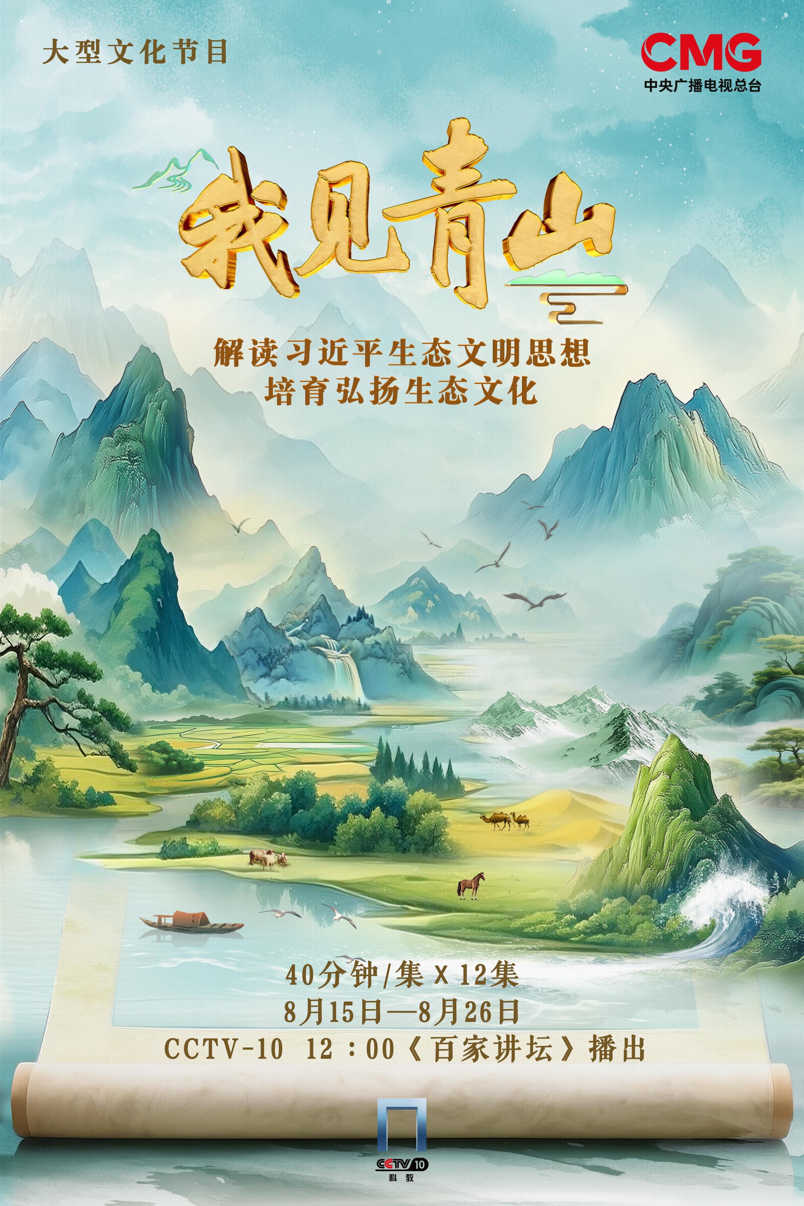 《我见青山》将于2025年8月15日至26日每天12:00在总台央视科教频道(CCTV-10)《百家讲坛》栏目播出,央视频同步上线。