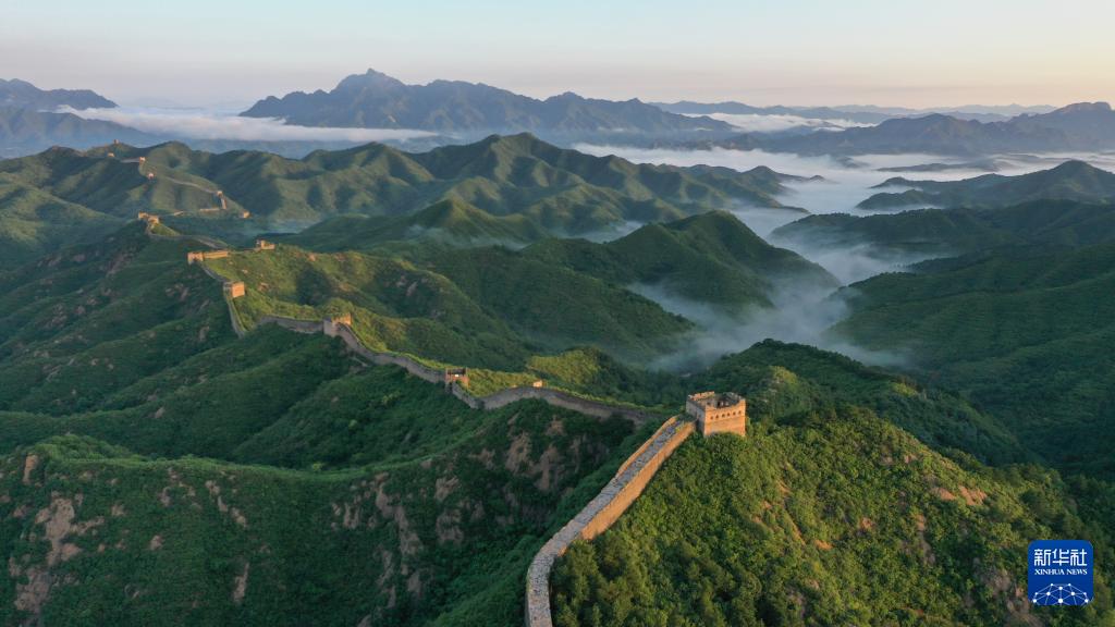当日清晨,位于河北省承德市滦平县的金山岭长城附近出现云海景观,景美如画。