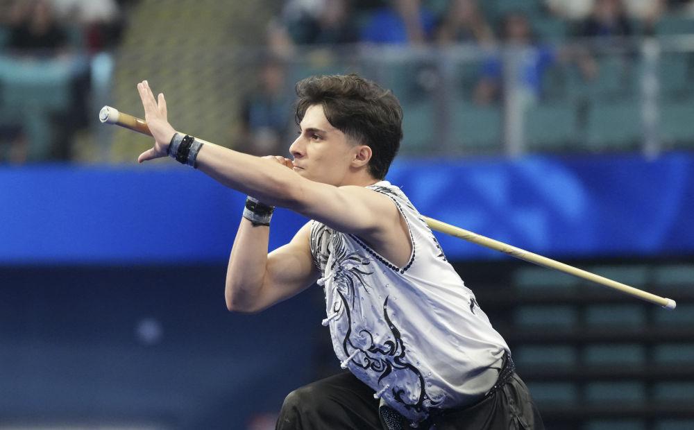武术赛场同样热闹,中外选手的太极拳动作行云流水,刀术虎虎生风,“猴棍”灵动迅捷……引发观众阵阵欢呼。
