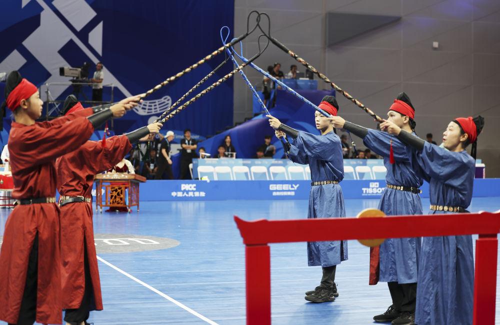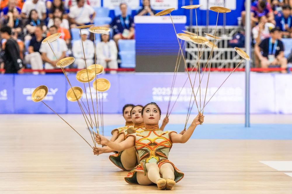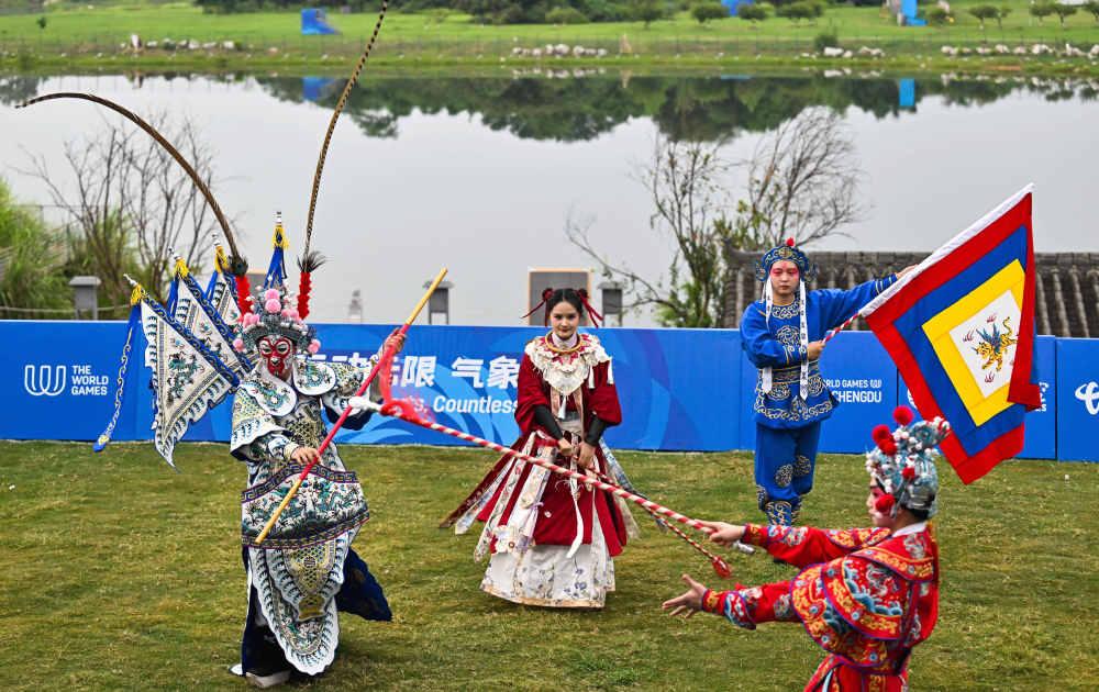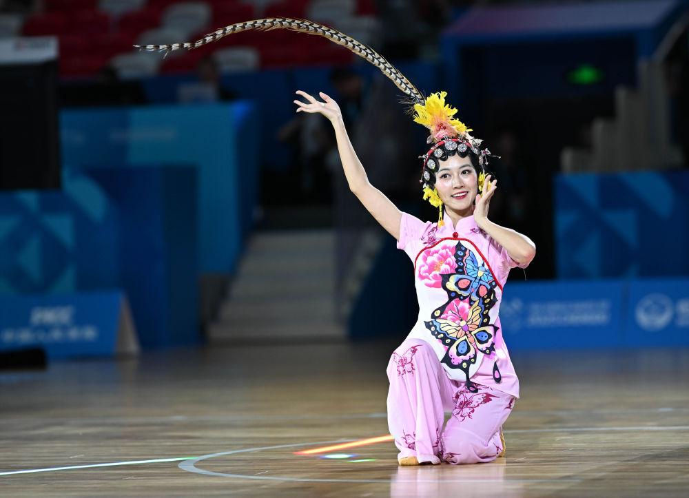 ↑8月8日,演员在成都世运会射准射箭复合弓混合团体决赛颁奖仪式前表演川剧。 ↑8月8日,演员在成都世运会射准射箭复合弓混合团体决赛颁奖仪式前表演川剧。 ↑8月8日,演员在成都世运会射准射箭复合弓混合团体决赛颁奖仪式前表演川剧。 ↑8月10日,川剧变脸表演者在成都世运会技巧和蹦床比赛决赛前进行暖场表演。 ↑8月10日,川剧变脸表演者在成都世运会技巧和蹦床比赛决赛前进行暖场表演。 ↑8月12日,演员在成都世运会荷球混合团体赛决赛铜牌赛间隙进行杂技表演。 ↑8月12日,演员在成都世运会荷球混合团体赛决赛铜牌赛间隙进行杂技表演。 ↑8月12日,演员在成都世运会荷球混合团体赛决赛铜牌赛间隙进行杂技表演。 ↑8月10日,成都艺术剧院杂技团的演员在成都世运会单排轮滑球比赛间隙表演节目《巴蜀水流星》。 ↑8月9日,小朋友在成都世运会荷球混合团体赛预赛A组比赛间隙表演。