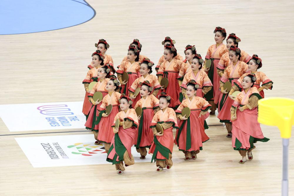 ↑8月8日,演员在成都世运会泰拳女子48公斤级半决赛前表演舞蹈。