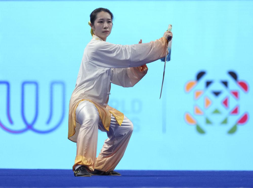 8月9日,马来西亚选手彭牬尔在2025年成都世运会女子长拳-剑术-枪术项目的剑术比赛中。