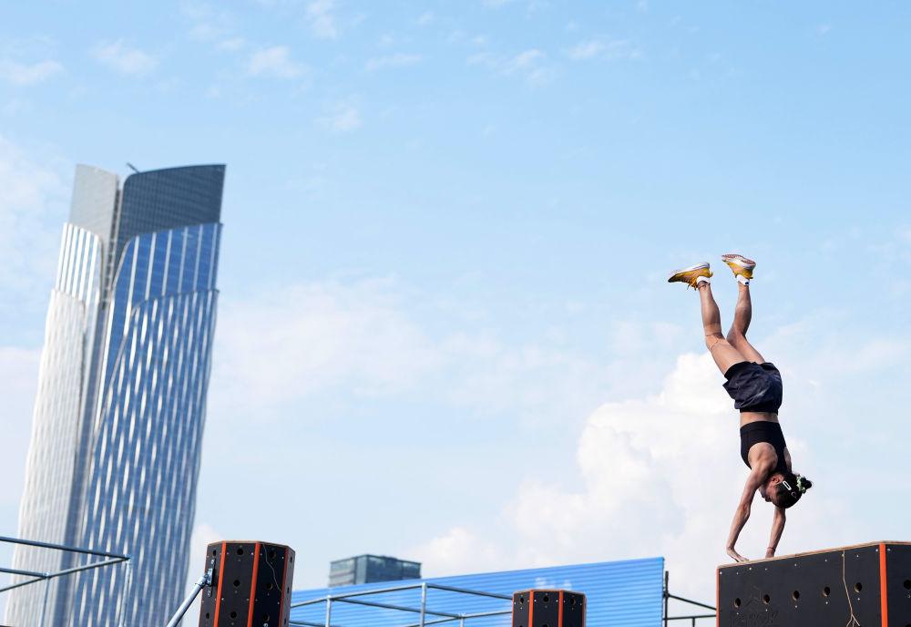 8月13日,中国选手商春松在2025年成都世运会跑酷女子自由式决赛中。跑酷起源于20世纪90年代的法国巴黎,于2006年进入中国。