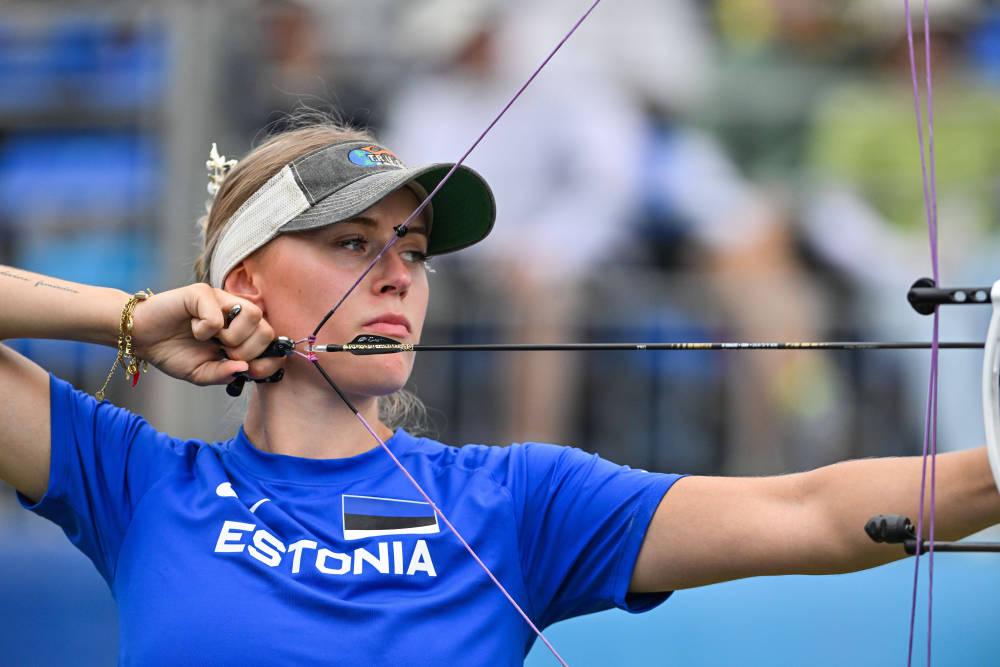 8月9日,爱沙尼亚选手在2025年成都世运会射准射箭比赛中。