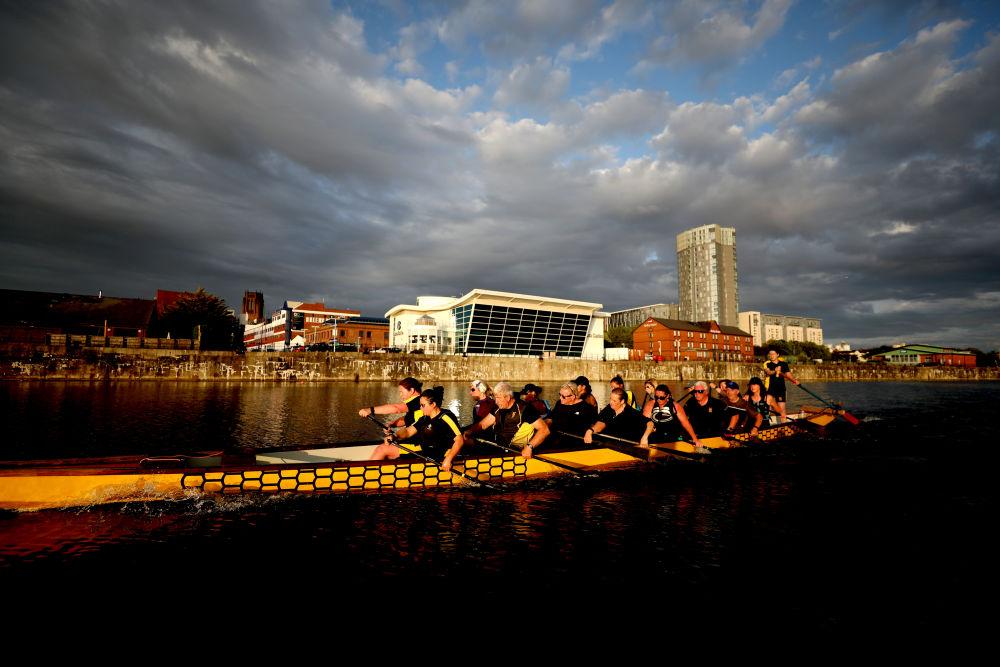 2023年6月20日,一支英国龙舟队在英国利物浦训练。
