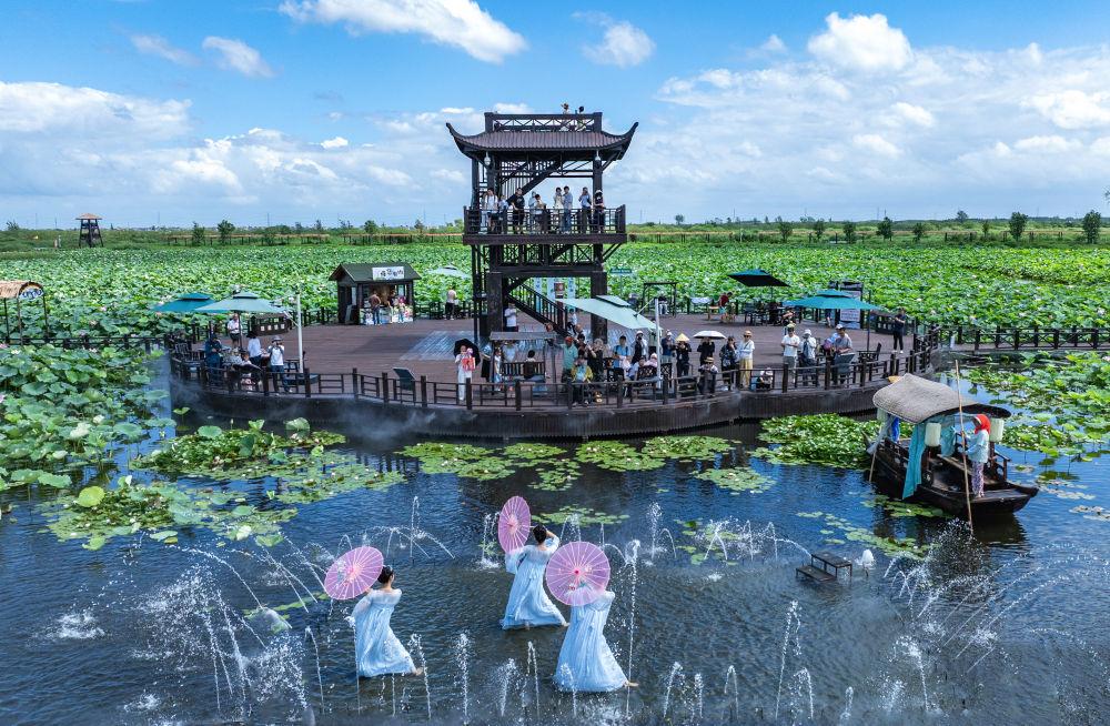 ■在甘肃白银,水川湿地公园水光潋滟,旅游小火车载着游客缓缓穿行,为这片湿地平添几分惬意与灵动。近年来,白银市依托黄河流经境内258公里的天然生态走廊,完善基础设施,持续推动乡村旅游提质升级。