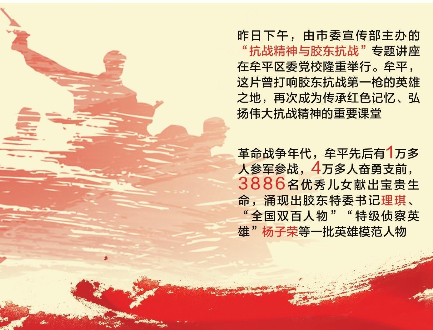 当日下午,由市委宣传部主办的“抗战精神与胶东抗战”专题讲座在牟平区委党校隆重举行。牟平,这片曾打响胶东抗战第一枪的英雄之地,再次成为传承红色记忆、弘扬伟大抗战精神的重要课堂。
