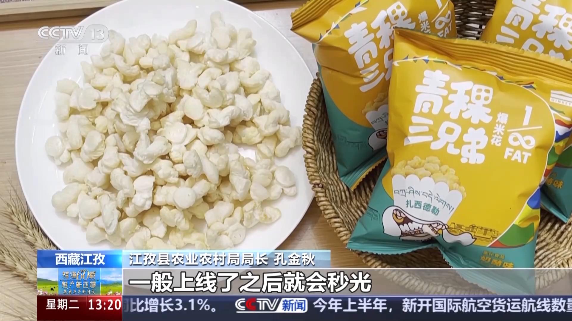 江孜县农业农村局局长 孔金秋:像这个青稞爆米花,麻森这些产品在线上都非常受欢迎,一般上线了之后就会秒光,我们现在通过企业加合作社加农户的这种发展模式,已经实现了青稞原料订单7000吨,预计今年能够实现1.5万吨,青稞深加工产业的这个总产值预计突破1.7亿元,同比增长21%。