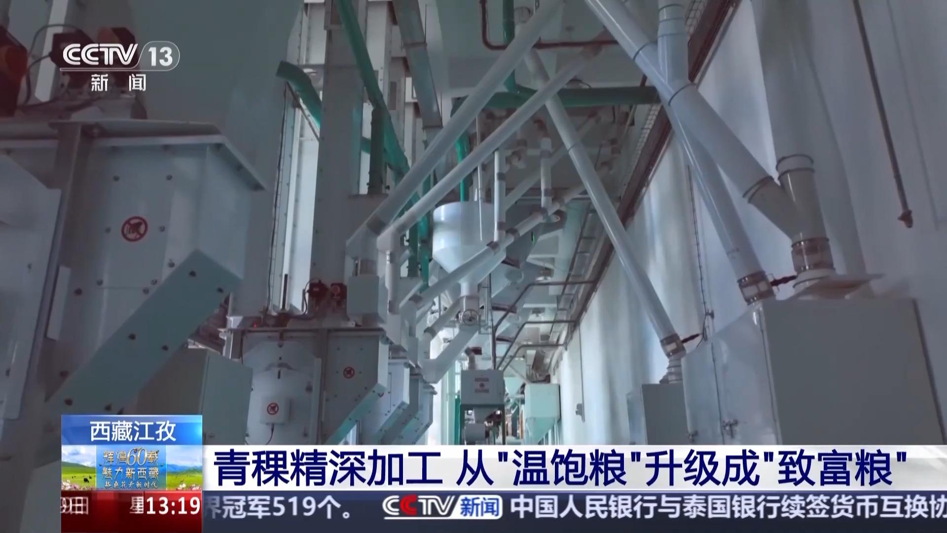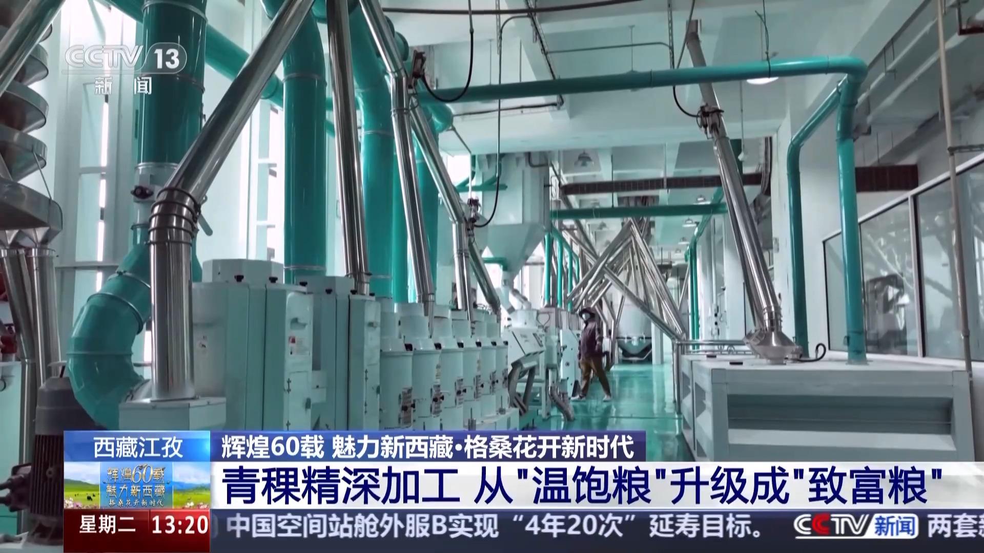 总台记者 于晨:我现在是在江孜县的一家专注于青稞产品研发的科技公司,去年9月,全国首条青稞谷物专用生产线在这里落地,填补了行业的空白,这让青稞的得粉率由原来的60%以下提升至了70%以上。