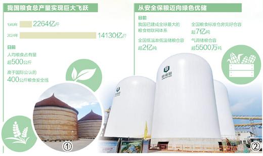 国家粮食和物资储备局有关负责人介绍,“十四五”期间,我国加大粮食仓储设施建设力度,加快绿色储粮技术推广应用,持续提升科学储粮水平和粮食品质保障能力。“如今,我国已建成全球最大的粮食物联网体系,粮食仓储能力达到与年度粮食产量相匹配的7亿多吨规模。”国家粮食和物资储备局科学研究院粮食储运研究所所长张忠杰介绍,我国计划3年内在全国七大储粮生态区建设100个绿色储粮技术集成应用示范点,以点带面推进仓储新技术、新设备定型、标准规程定型和产业化应用。