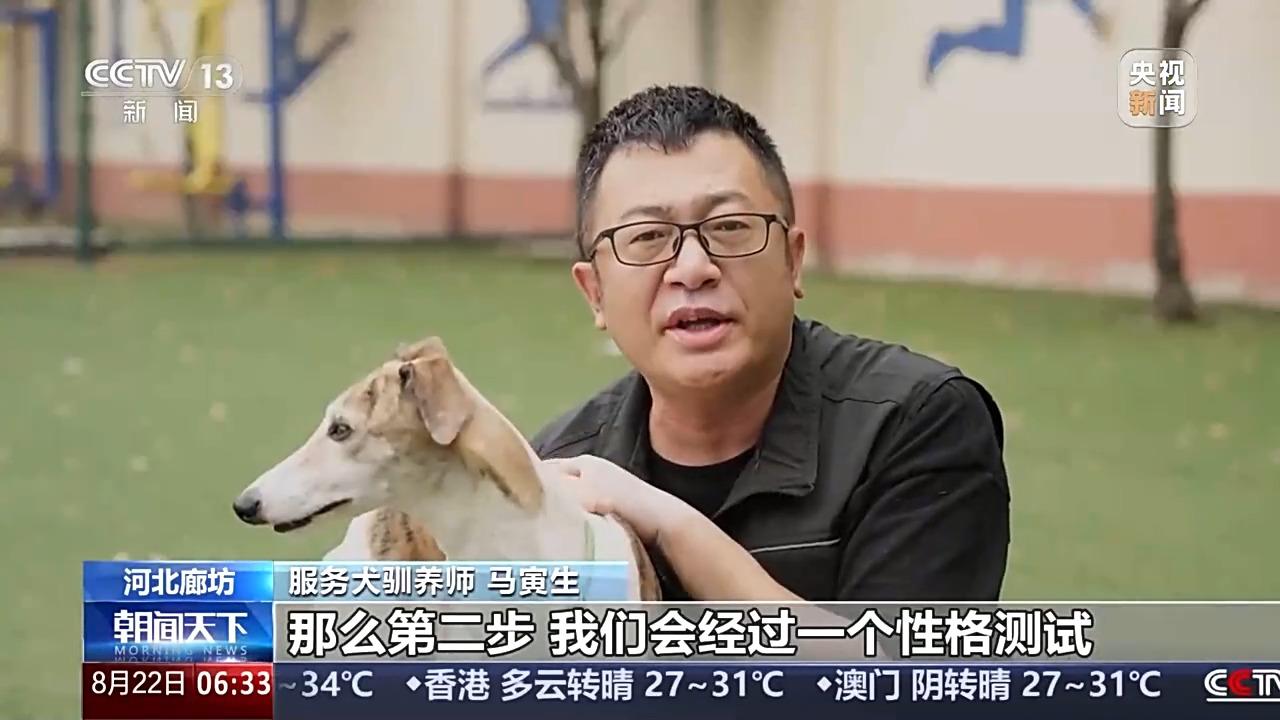 服务犬驯养师 马寅生:要想成为一只合格的服务犬,首先要通过基因筛查,确保狗的族系里没有遗传疾病。第二步,我们要经过一个性格的测试,确保狗的稳定性。