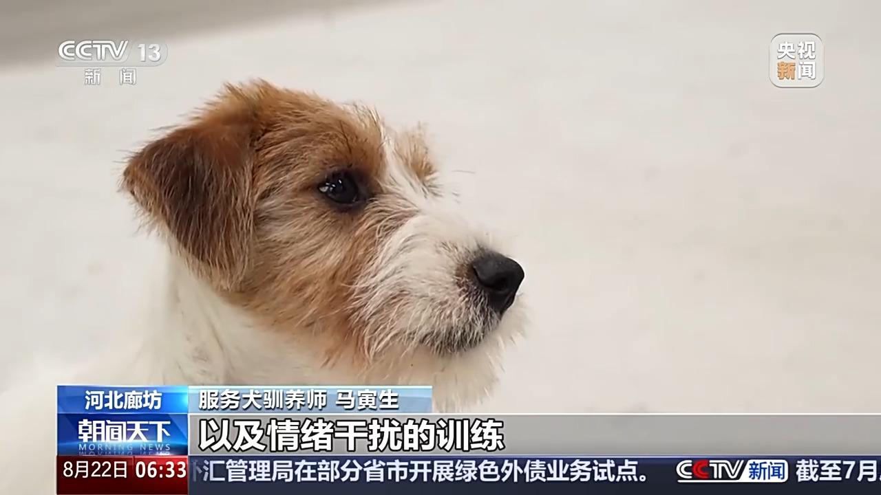服务犬驯养师 马寅生:我们每天除了要教它一些基本服从,比如坐、卧、等待、随行,还会加入一些社会化训练、脱敏训练、接触安全训练,还有情绪分辨的训练以及情绪干扰的训练。