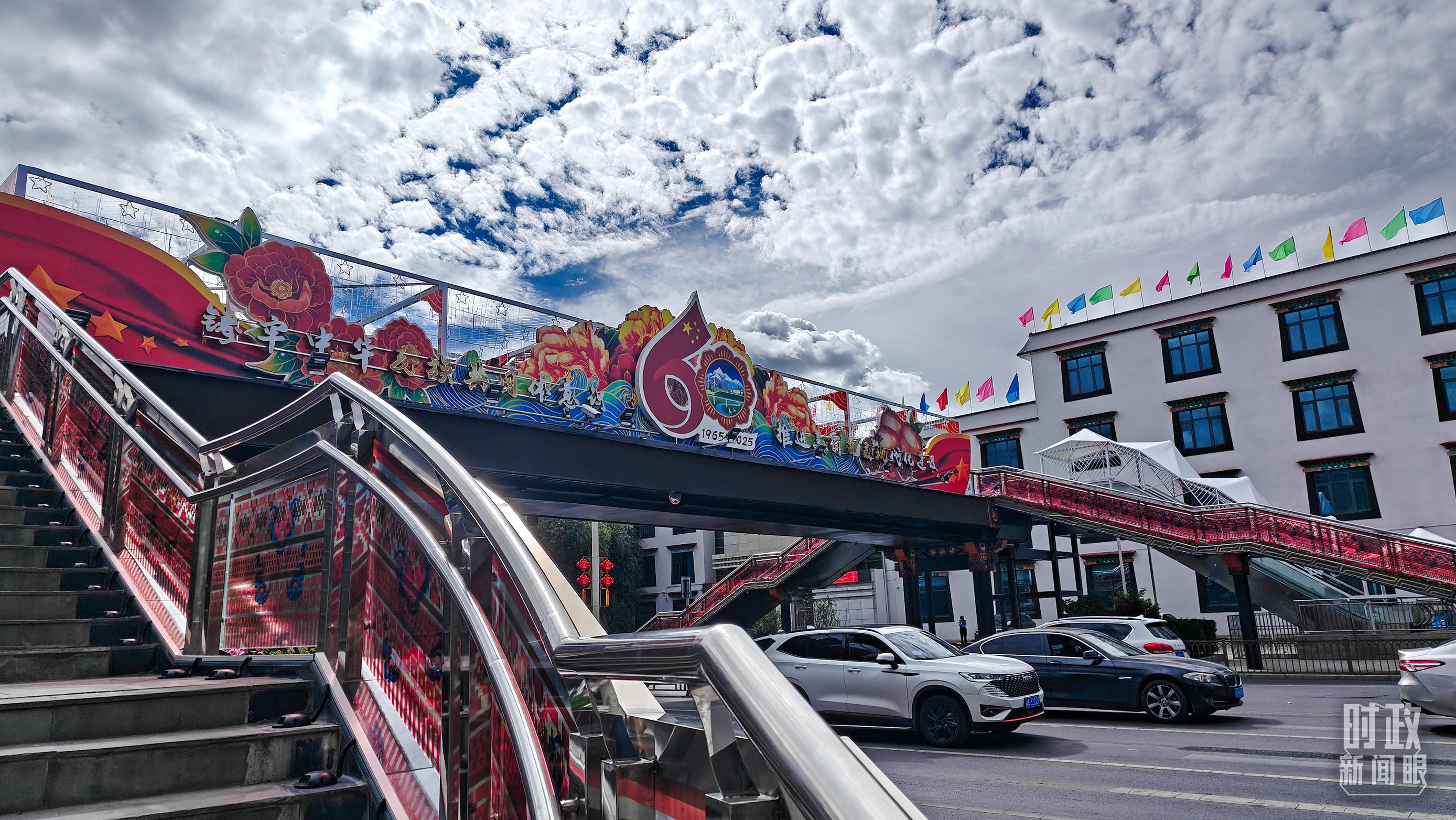 △西藏自治区成立60周年标语牌。(总台央视记者张宇拍摄)