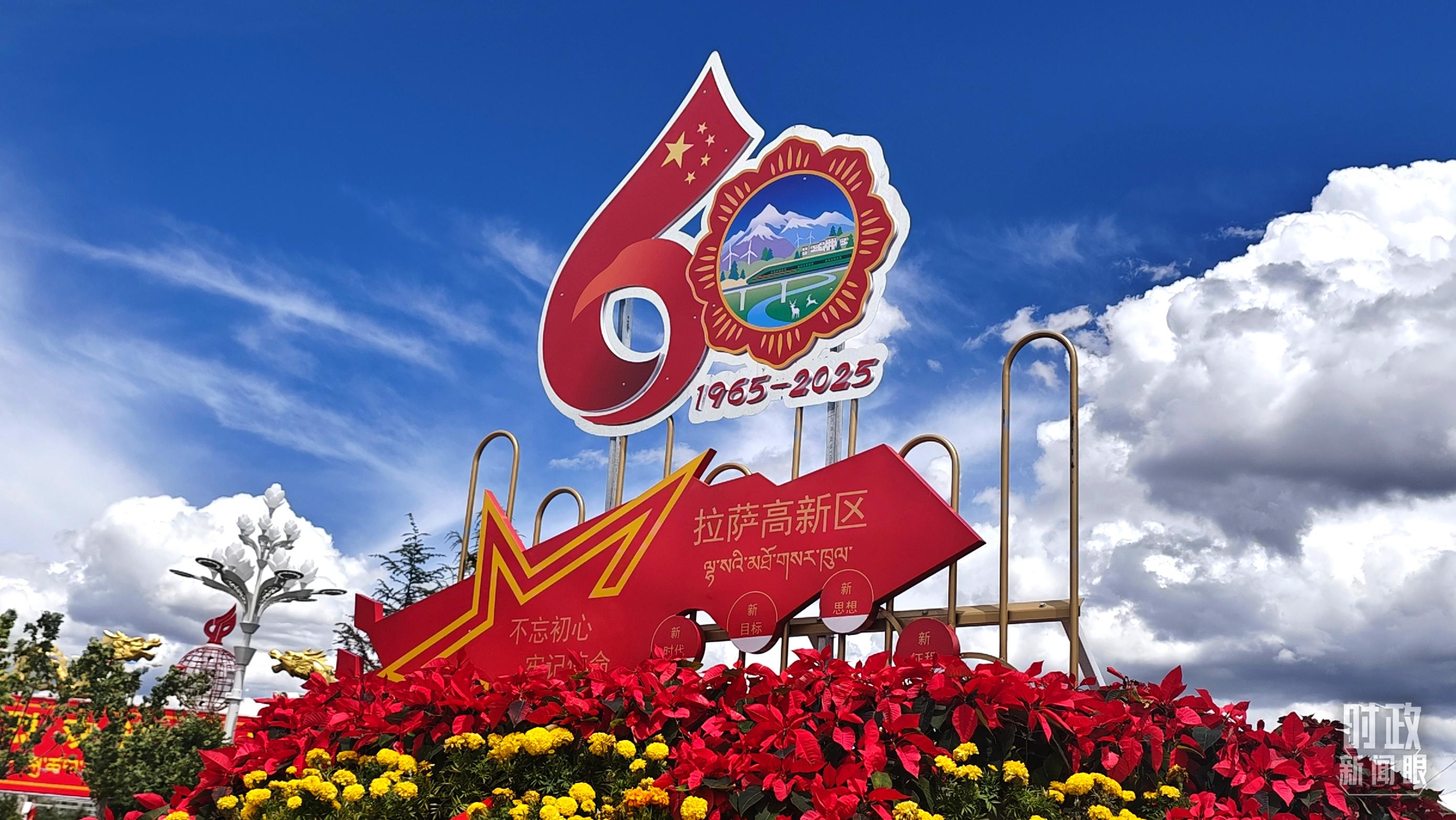 △西藏自治区成立60周年标识。(总台央视记者韩锐拍摄)