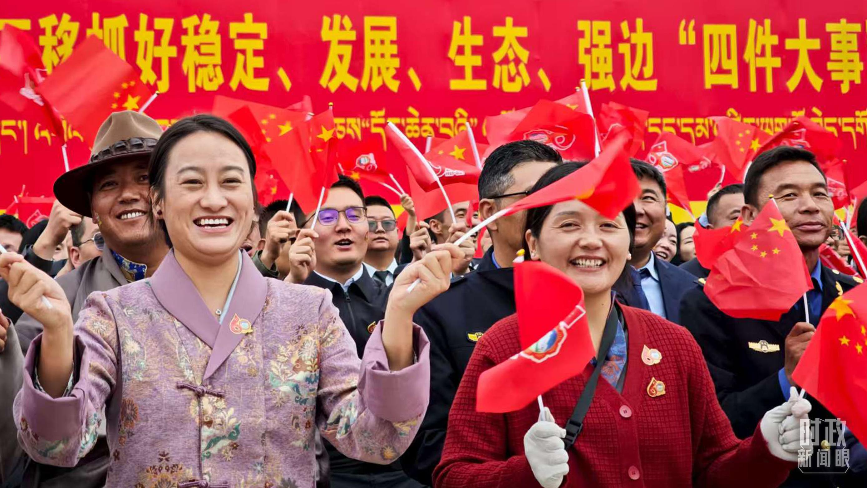 在这次庆祝大会的山南市彩车上,“家是玉麦,国是中国”是最醒目的标识之一,这是爱国守边的卓嘎一直以来的信念。2017年,总书记曾给西藏隆子县玉麦乡牧民卓嘎、央宗姐妹回信,勉励她们像格桑花一样扎根在雪域边陲,做神圣国土的守护者、幸福家园的建设者。