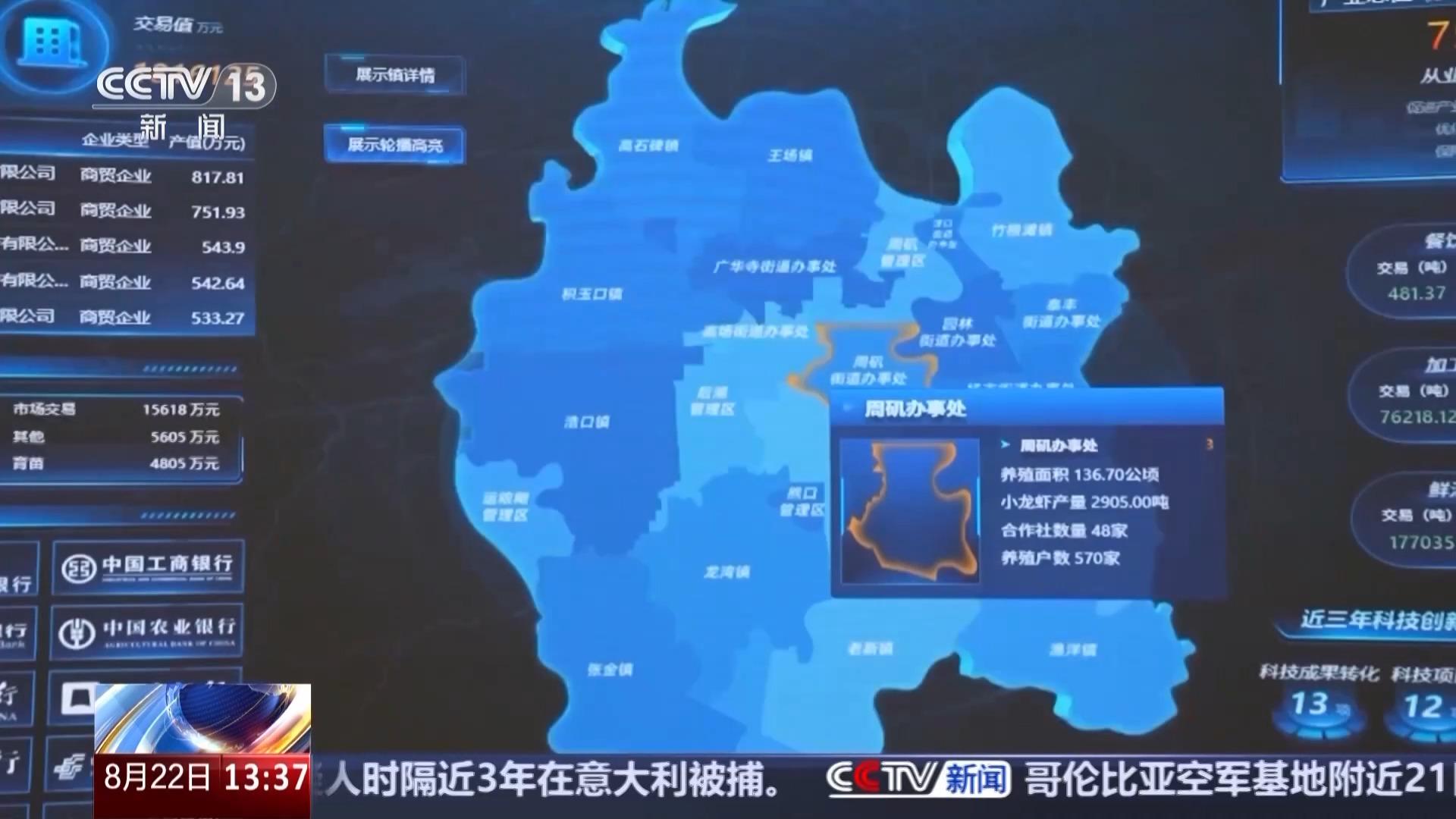 从这里出发,依靠沪渝高速、234国道、318国道等交通动脉,潜江小龙虾的物流直达专线,只需4到14小时就能把鲜活的潜江小龙虾送到全国600多个城市、1200多个服务网点。作为全国最大的小龙虾交易中心,2025年上半年,这里的鲜活小龙虾交易量高达17.7万吨,交易产值更是达到75.27亿元。