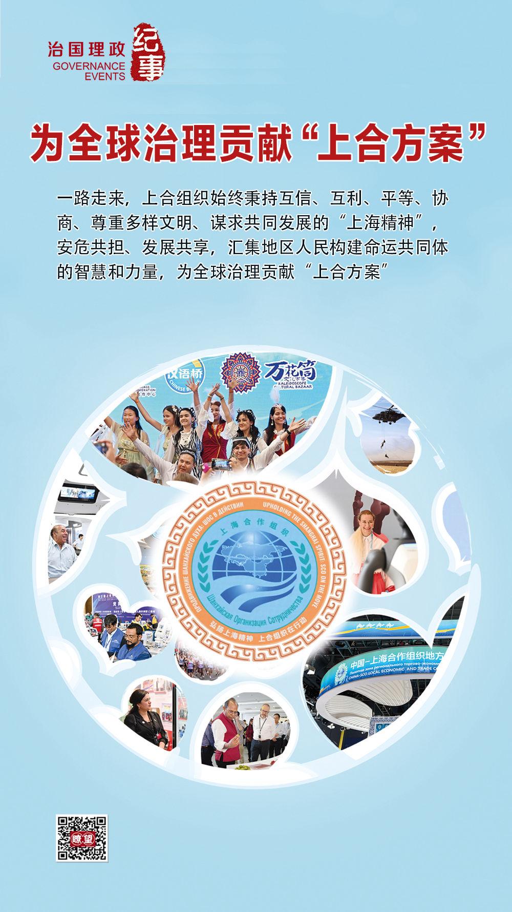 一路走来,上合组织始终秉持互信、互利、平等、协商、尊重多样文明、谋求共同发展的“上海精神”,安危共担、发展共享,汇集地区人民构建命运共同体的智慧和力量,为全球治理贡献“上合方案”。