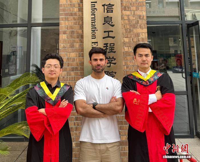 2025年毕业季,穆罕默德·沙拉尔跟实验室毕业的博士生合影留念。(天津大学 供图)