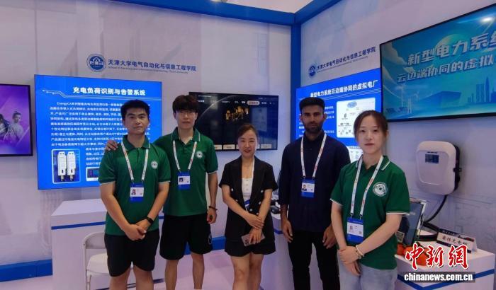 2024年6月,世界智能产业博览会期间,穆罕默德·沙拉尔与导师和实验室同学一起参与相关科研成果展陈工作。(天津大学 供图)