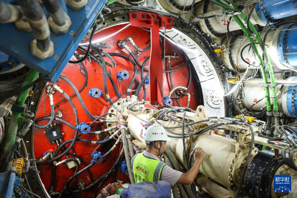 8月25日,技术人员在检查“永庆号”大直径盾构机设备线路。