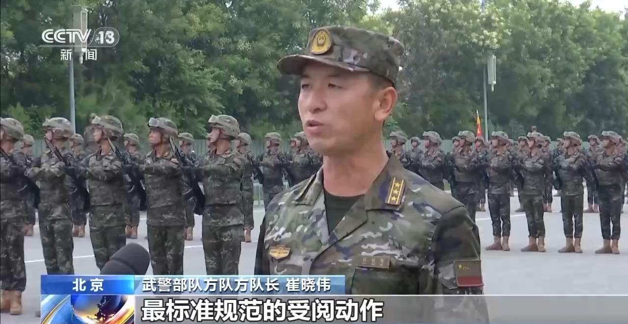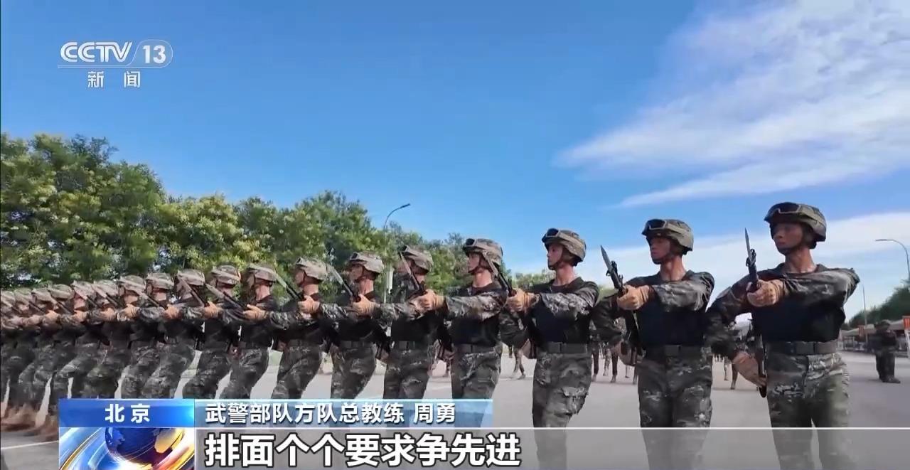 武警部队方队方队长 崔晓伟:目前我们已经进入最后的冲刺阶段,在纪念抗战胜利80周年纪念日当天,以最昂扬的精神状态、最标准规范的受阅动作,光荣地接受党和人民检阅,接受习主席检阅。
