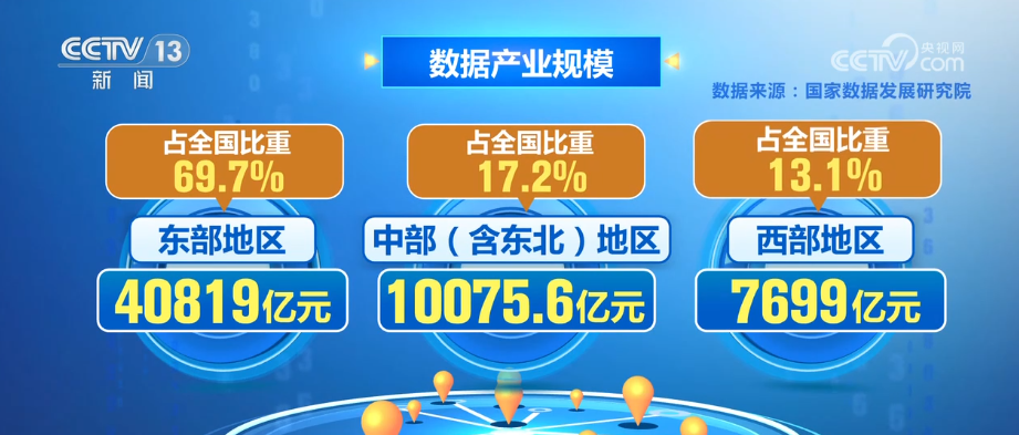 数据产业这一新兴产业,在产业分布上又呈现什么样的特点?最新测算显示,东部地区产业规模占大头,占全国比重近七成。