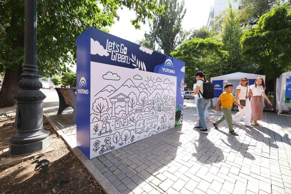 8月16日,在哈萨克斯坦阿拉木图市举行的环保公益活动中,22岁的当地大学生志愿者迪亚斯在公交车站向人们宣传绿色出行理念。“我常乘坐中国品牌的电动公交车,快捷、舒适又环保。”迪亚斯告诉记者。