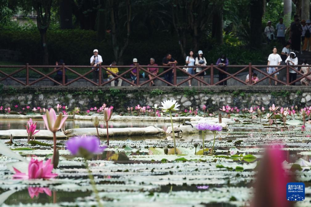 初秋时节,广西南宁市人民公园培育的900余株睡莲陆续绽放,吸引游人前来观赏。