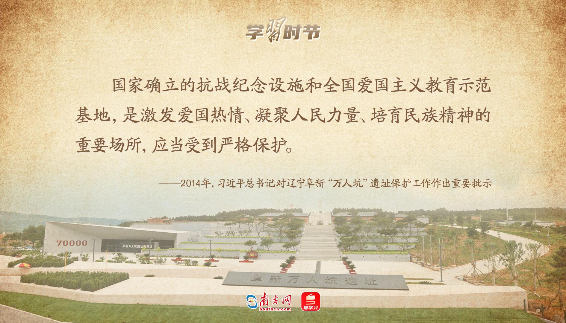 “国家确立的抗战纪念设施和全国爱国主义教育示范基地,是激发爱国热情、凝聚人民力量、培育民族精神的重要场所,应当受到严格保护。”
