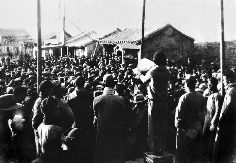 1935年12月9日,一二九运动在北平爆发。这是中国共产党领导的一次大规模爱国救亡运动,公开揭露了日本吞并华北进而独占中国的阴谋。运动迅速发展,很快席卷全国,成为中华民族觉醒历程中的一座丰碑。图为学生们向北平市民演讲。 新华社发