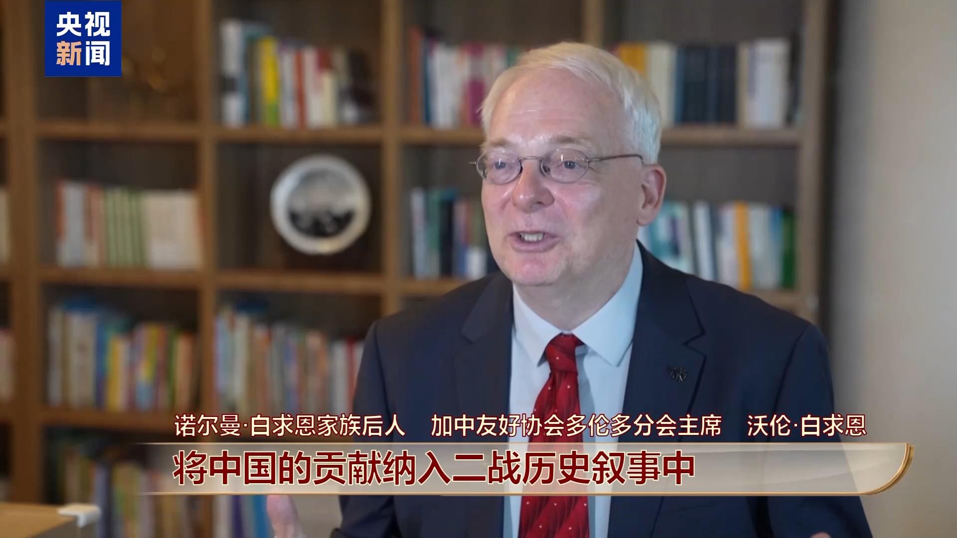 诺尔曼·白求恩家族后人 加中友好协会多伦多分会主席 沃伦·白求恩:我们要更有全球化视角或者说国际主义精神。我认为我们应该重点关注年轻人,将中国的贡献纳入二战历史叙事中,因为80年后的今天,真正经历过二战且依然健在的人已经很少了。我们必须分享研究成果,并向公众传播这些历史。