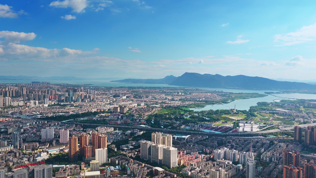 初秋时节,航拍镜头下的昆明尽展高原明珠的独特魅力。碧空澄澈,白云舒卷,滇池如镜,与城市天际线相映成辉。