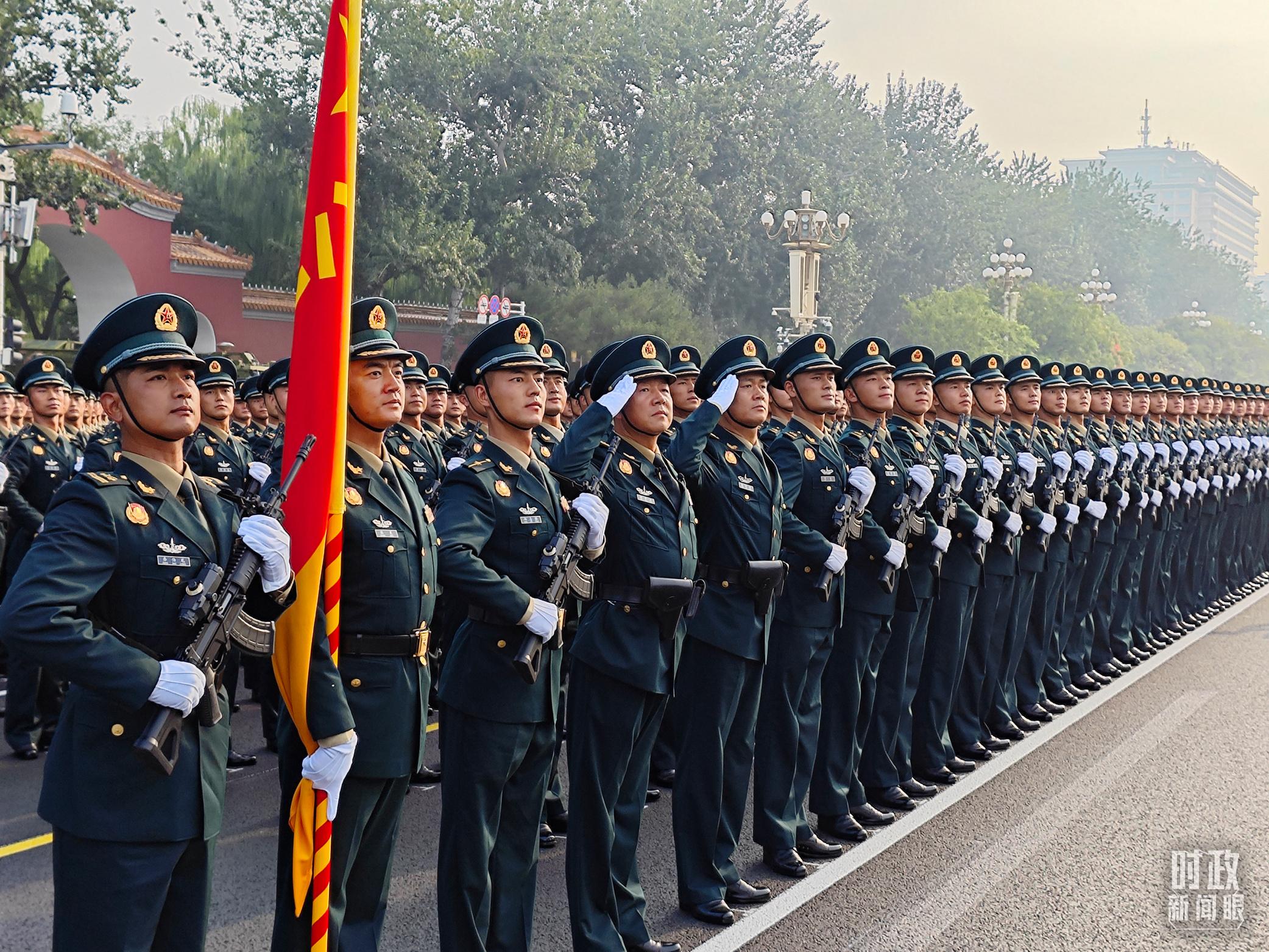 9月3日上午,红日东升,霞光洒满北京长安街,45个受阅方(梯)队整齐列队。天安门广场上旌旗猎猎,气象恢宏。