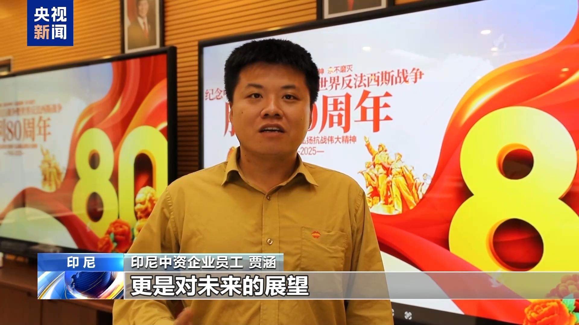 印尼中资企业员工 贾涵:此次阅兵不仅是对历史的缅怀,更是对未来的展望。它向世界传递了中国人民珍爱和平、追求发展的坚定信念。在海外,我们深深体会到,只有国家强大才能更好地保障海外公民和企业的利益。我们将以更加昂扬的姿态投入中国梦的伟大实践中。