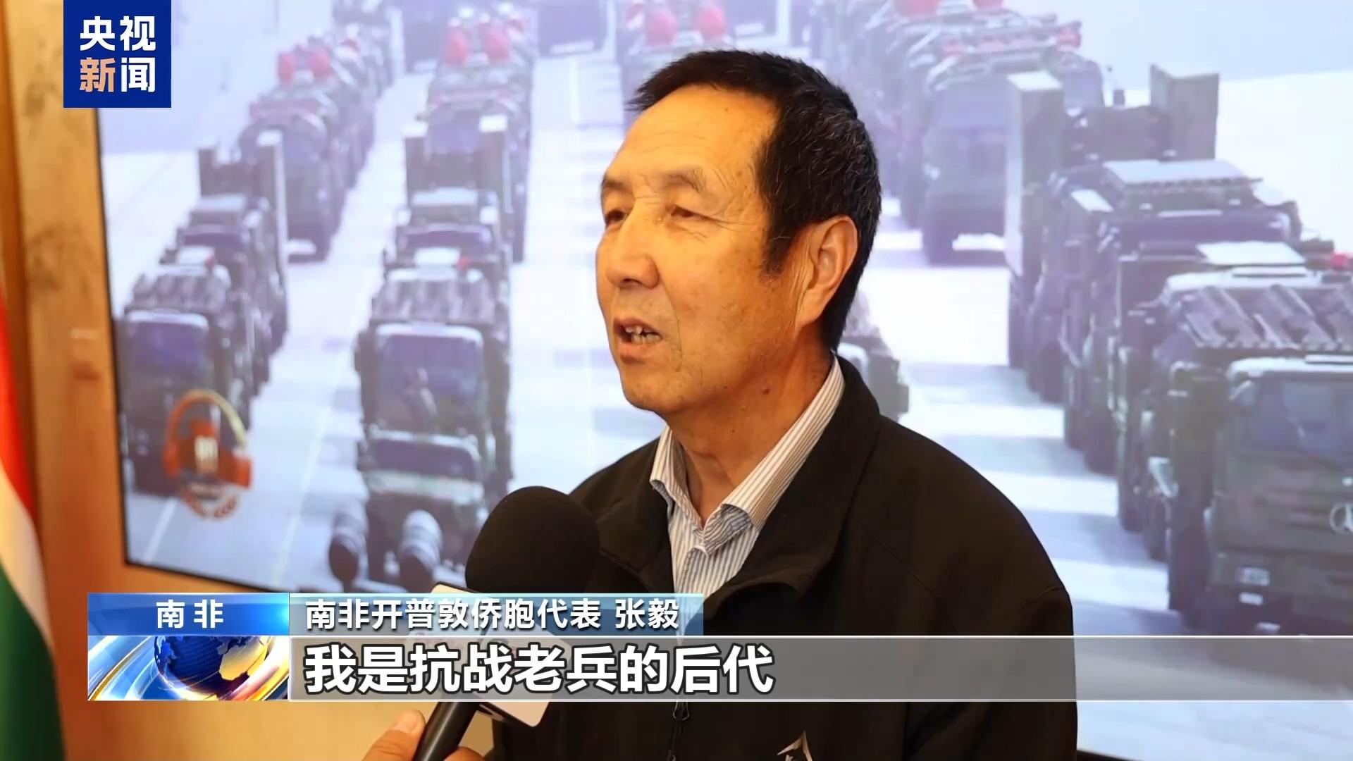 南非开普敦侨胞代表 张毅:我是抗战老兵的后代,我父亲1941年在冀中平原加入八路军,曾参与多场战斗。作为未经历战争的新一代,我们一定要继承老一代革命先烈的精神,发扬他们的必胜信念,为世界和平贡献力量。