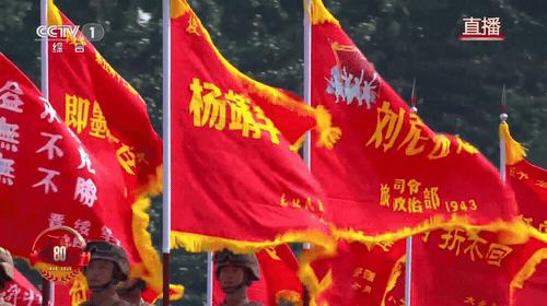 铁流滚滚,战旗猎猎。在盛大的阅兵式中,80面抗战英模部队荣誉旗帜组成战旗方队,这些英雄的旗帜,胜利的旗帜,不朽的旗帜,永远激励着人民军队勇往直前。