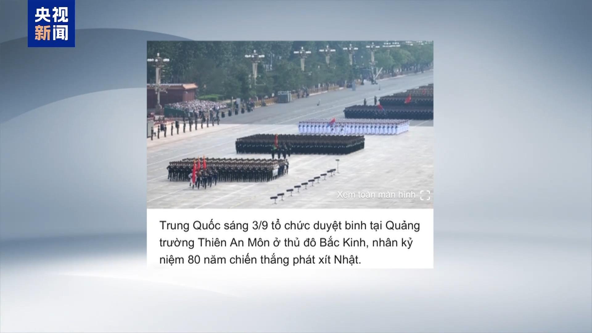 越南快讯报道称,中国在阅兵仪式上展示了众多先进武器,其中一些是首次公开亮相。越南网报道称,今年的阅兵仪式展现了中国维护世界和平的军事实力。