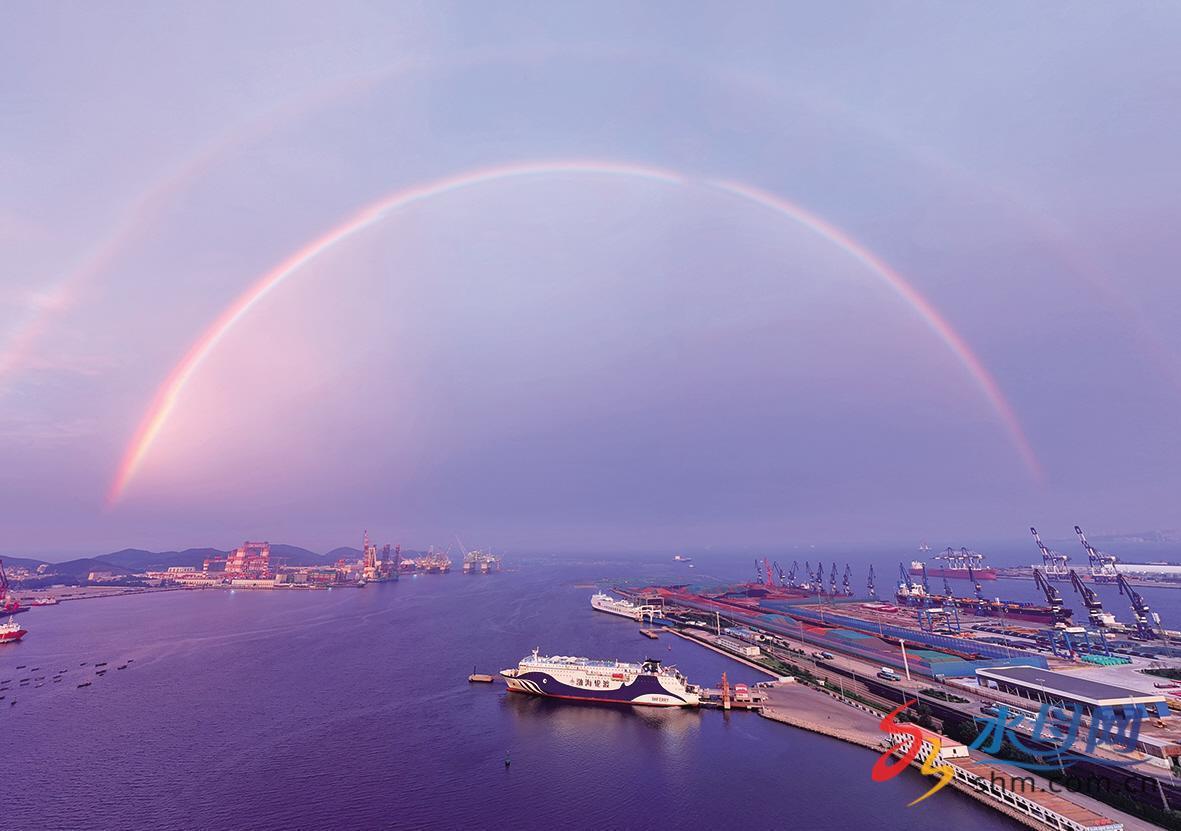 9月3日傍晚,烟台市上空出现双彩虹,景象蔚为壮观。YMG全媒体记者 唐克 摄
