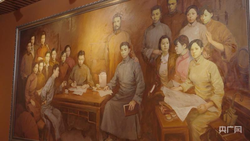 油画《觉悟的宣言》是全体社员唯一的“全家福”(央广网记者 韩雨晨 摄)