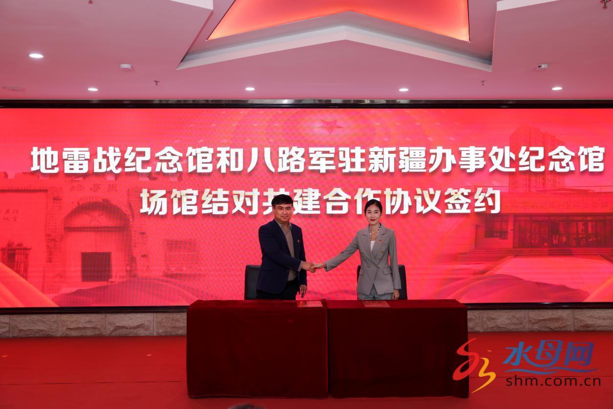 在与会嘉宾的见证下,烟台市文化和旅游局与乌鲁木齐市文化广播电视和旅游局负责同志共同签署了《革命文物保护利用合作协议》,地雷战纪念馆与八路军驻新疆办事处纪念馆负责同志共同签署了《场馆结对共建合作协议》。两份协议的签署,标志着两地红色文化共建共享迈入实质性合作新阶段。