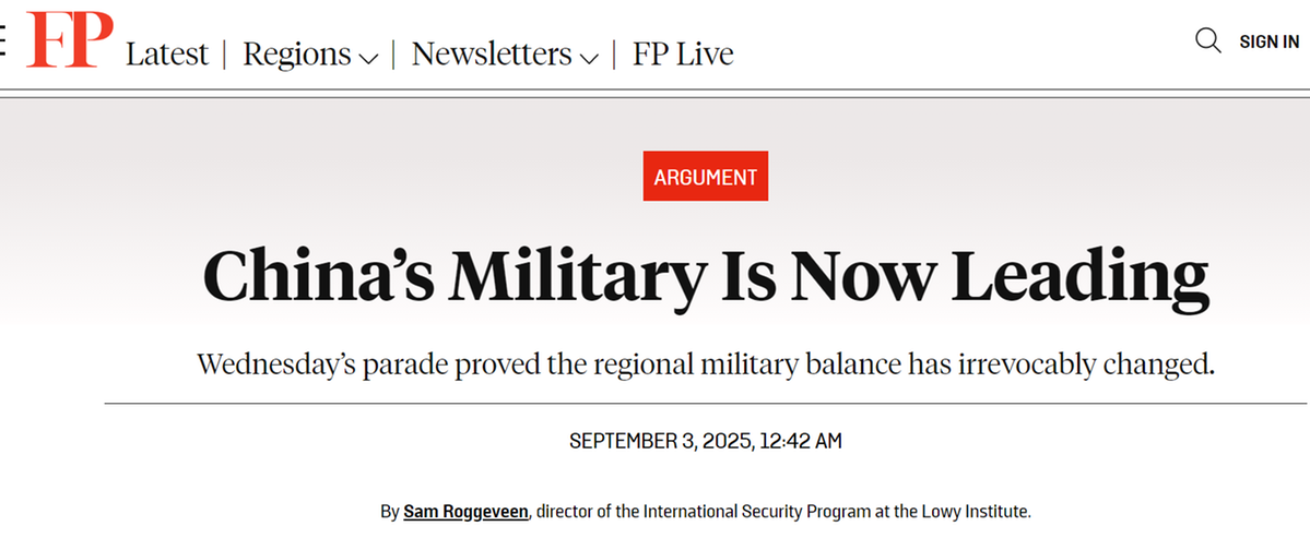 洛伊研究所国际安全项目主任萨姆·罗格维恩在美国《外交政策》网站撰文称,西方的军事规划人员会对阅兵式上展出的装备感到惊讶,已经不能再说中国军队在迎头赶上,或者所谓“抄袭”外国军事装备设计,“中国军备正在创新,并且处于领先地位”。