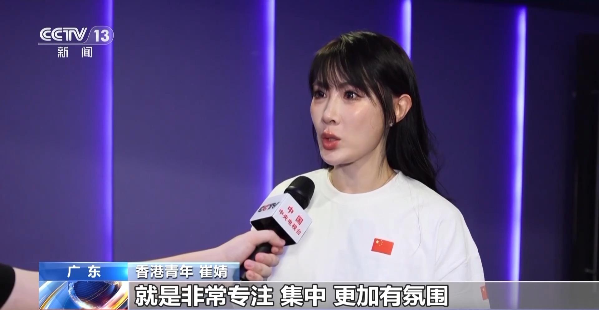香港青年 崔婧:在电影院看,就是非常专注、集中,更加有氛围,当五星红旗升起的那一刻,全场齐声唱国歌,有热泪盈眶的感觉,感觉到国家的团结和力量。我看到了强大的海陆空军队阵容、先进的现代化武器装备,很震撼。我觉得国家的强大就是我们最大的底气,希望祖国繁荣富强。