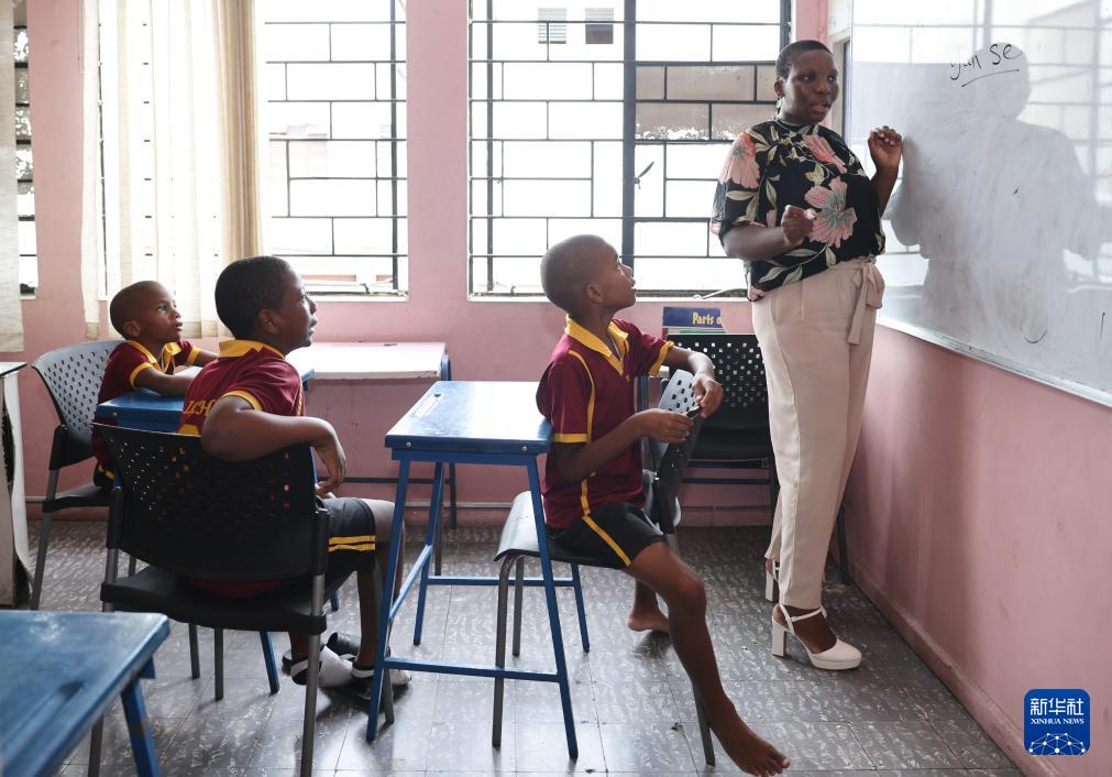 在牙买加首都金斯敦的一间教室里,艾特特殊教育小学校长娜塔莎·拉塞尔在黑板上书写着与颜色相关的汉字,孩子们端坐在椅子上,跟随她轻声朗读。教室里时而响起整齐的读书声,时而响起轻快的中文歌曲旋律。