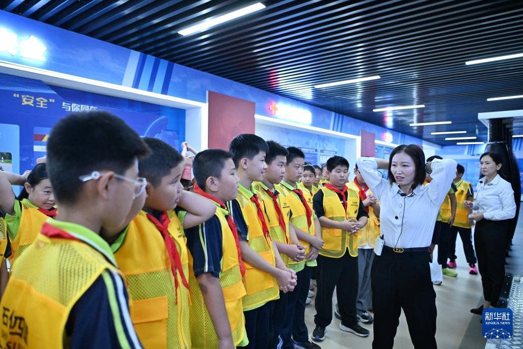 9月12日,天津市滨海新区大港第十一小学学生在中石化第四建设有限公司开展的科普活动上学习避险动作。